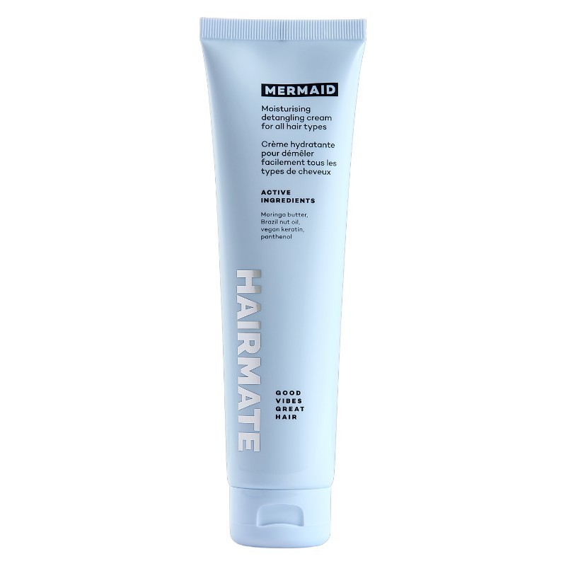 Hairmate Mermaid Universal Cream ist eine All-in-One-Entwirrungscreme , die dank ihrer Formel mit Moringabutter, Paranussöl und veganem Keratin das Haar sofort mit Feuchtigkeit versorgt, weich macht und schützt.