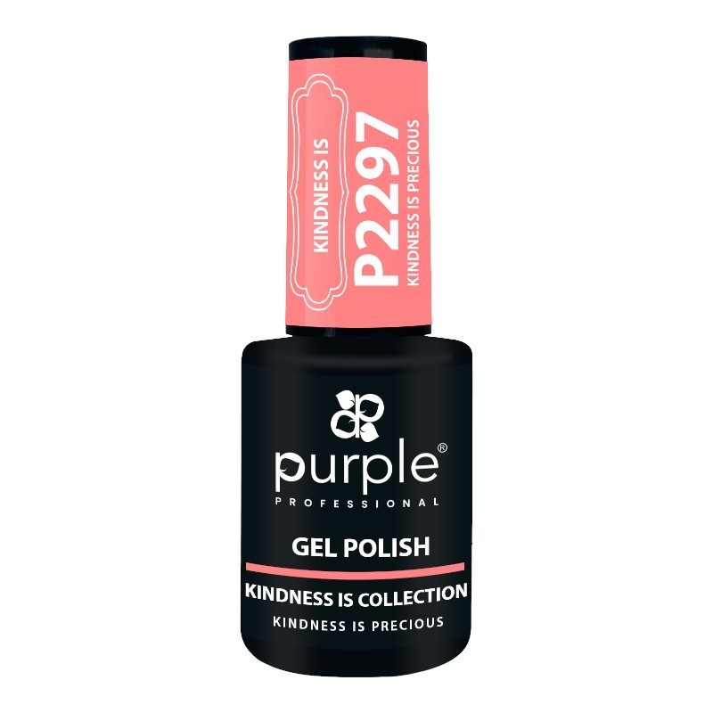El Esmalte Gel P2297 Kindness is Precious de Purple Professional es un vibrante color rosa eléctrico que ofrece alta cobertura, durabilidad y colores brillantes con una duración de 4 a 6 semanas.