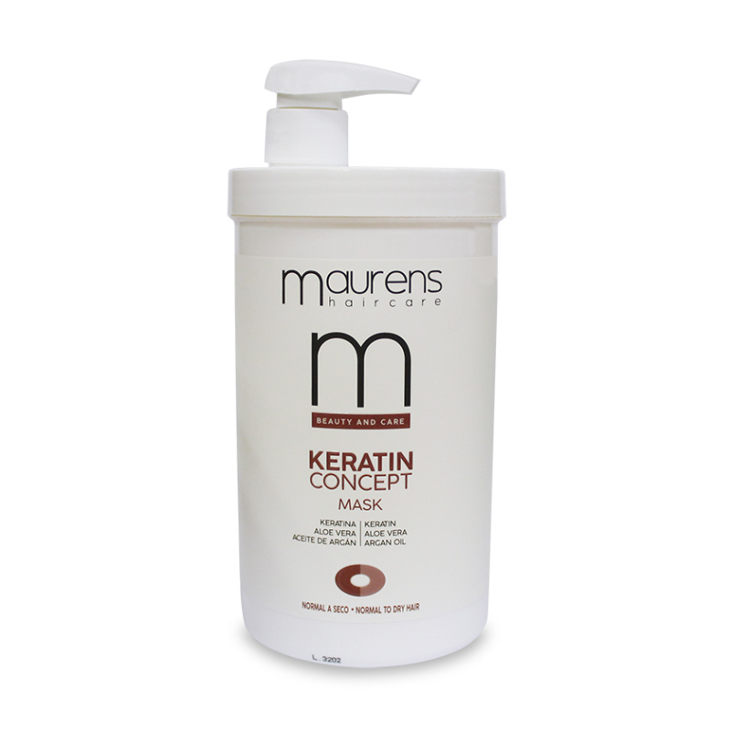 La mascarilla reparadora Keratin Concept de Maurens tiene Keratina, Aloe Vera y Aceite de Argán, que protegen el cabello, hidratándolo y nutriéndolo en profundidad.