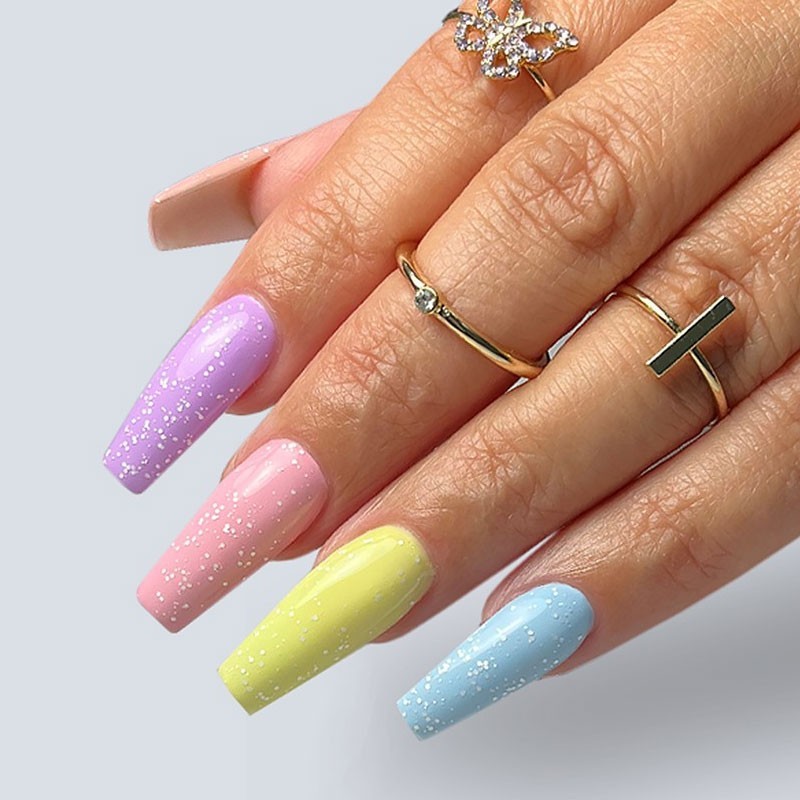 Top Coat avec des flocons blancs No Wipe (aucune couche collante n'est créée à la surface de l'ongle) pour le gel, l'acrygel et l'émail acrylique.