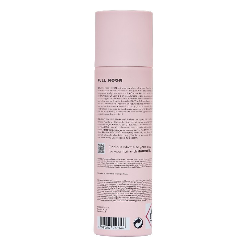 Le shampooing sec Hairmate Full Moon est un produit tout-en-un qui combine laque et shampooing sec . Il rafraîchit les cheveux, leur donne du volume et fixe la coiffure pour un fini naturel et sans résidus.