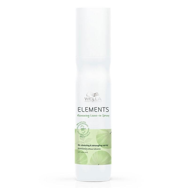 Wella Elements Leave In Spray com Aloe Vera, um spray desembaraçante sem enxágue instantâneo para todos os tipos de cabelo. Sua fórmula com 99% de origem natural, entre os quais se destacam o extrato de aloe vera e o extrato de azeite de oliva, hidrata e amacia profundamente os cabelos, facilitando o penteado, ao mesmo tempo que os protege do frizz e do calor, evitando quebras. Não contém silicones.