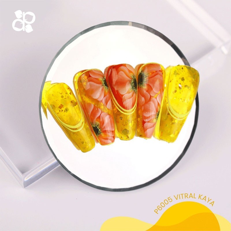 O polidor de gel para vitrais Kaya P6005 da Purple Professional é uma das joias da coleção. Com seu efeito translúcido, este amarelo safira confere um toque radiante e alegre às suas unhas. Ideal para criar obras de arte únicas, este verniz gel cura sob LED/UV em 90/120 segundos .