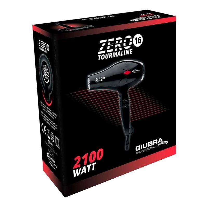 Um secador profissional ZERO 16 Turmalina de Giubra . Com motor profissional de longa duração , potência de 1800-2100W , 2 velocidades, 3 temperaturas, sopro de ar frio, 2 bicos, chave de 3 metros de comprimento.