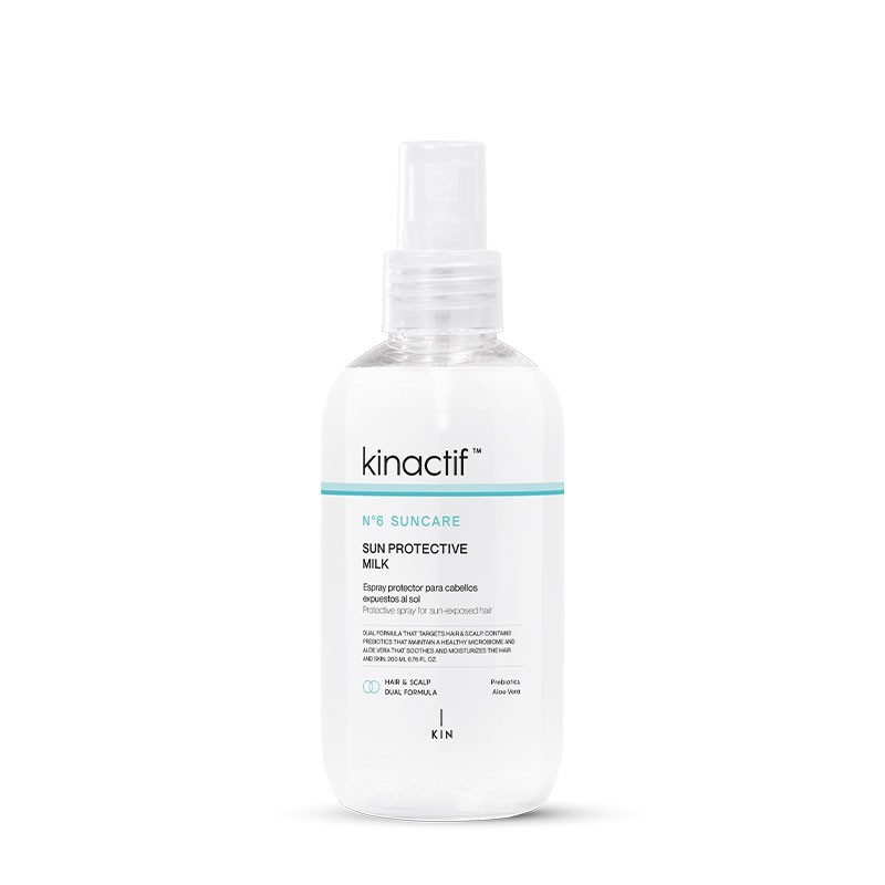 Este spray Kinactif Nº6 Sun Protective Milk é resistente à água e protege os cabelos dos raios solares, evitando a desidratação e a deterioração da cor dos cabelos.
